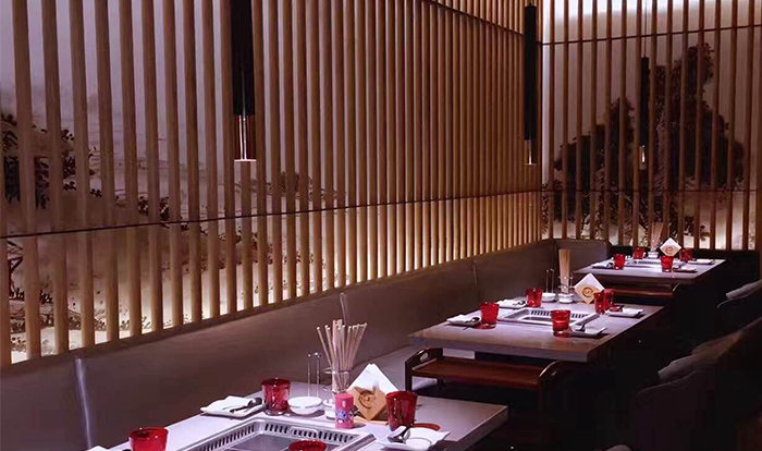 川山甲的餐廳裝修很是獨特,走進餐廳就仿佛進入了大自然,墻上的一幅幅山水畫非常美觀,透過木樁似的屏風看過去,一張張白色大理石方桌上擺著,精致的紅色杯子,別有風味。更重要的是選用了韓博智能無煙火鍋設備,吸油煙率高達99%,使餐廳再無油煙味彌漫,餐廳也顯得很溫馨,很優雅。
