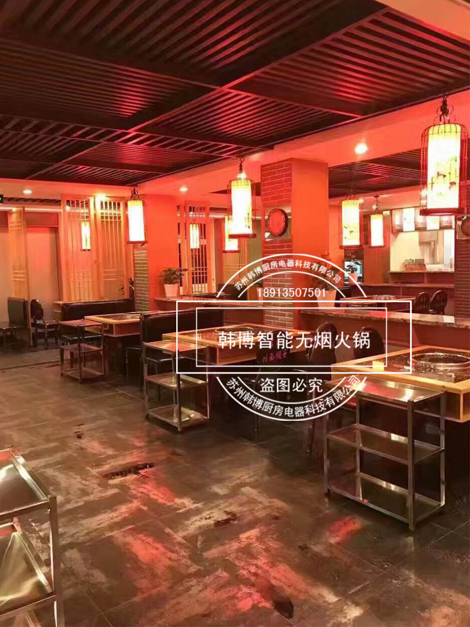 吉立.川西壩子火鍋店剛開業(yè)不久,選用韓博智能無煙火鍋設(shè)備,獨(dú)創(chuàng)凈吸強(qiáng)排技術(shù),油煙吸凈率高達(dá)99%,從源頭杜絕油煙產(chǎn)生,真正為顧客提供舒適愉悅的就餐環(huán)境。韓博科技投入無煙火鍋、無煙燒烤已經(jīng)6年時(shí)間,積累了豐富的行業(yè)經(jīng)驗(yàn),無論是生產(chǎn)能力還是研發(fā)能力都是行業(yè)領(lǐng)先。目前已與火鍋行業(yè)5000余家火鍋店展開了合作,客戶遍布全國!