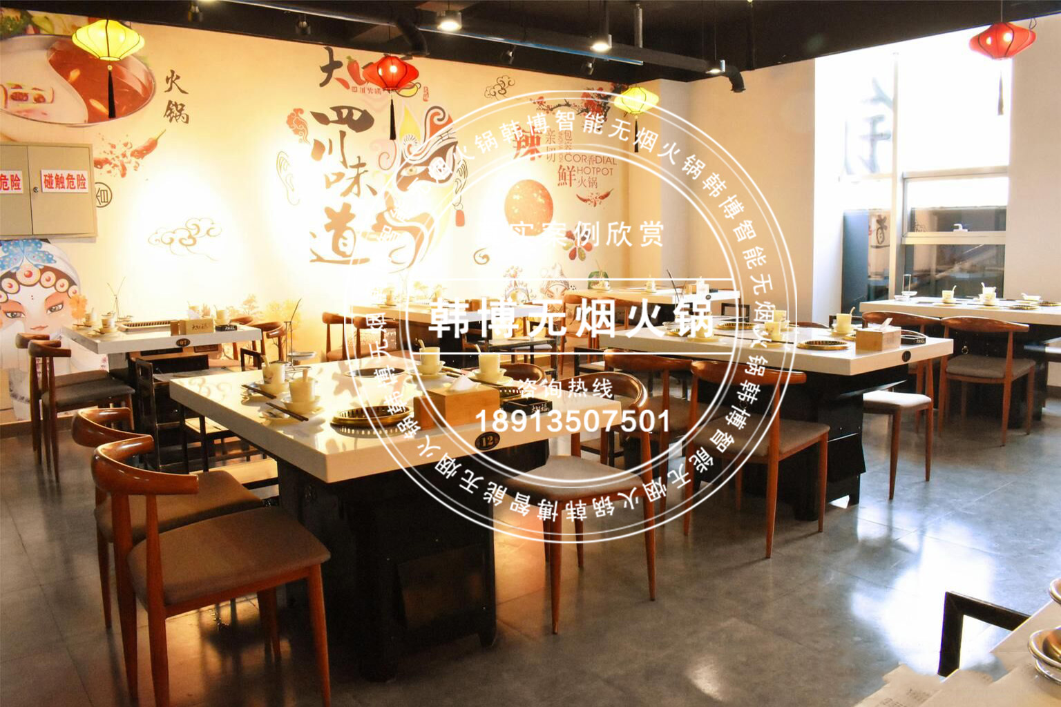 用餐環境也都是經過特別設計的,為的就是營造好的就餐環境,有好的就餐環境,才會有更多的顧客上門。”另外,店內全部采用了韓博無煙火鍋,高達99%以上的火鍋油煙全部被吸走,吃完火鍋身上再也沒有一點火鍋味!
