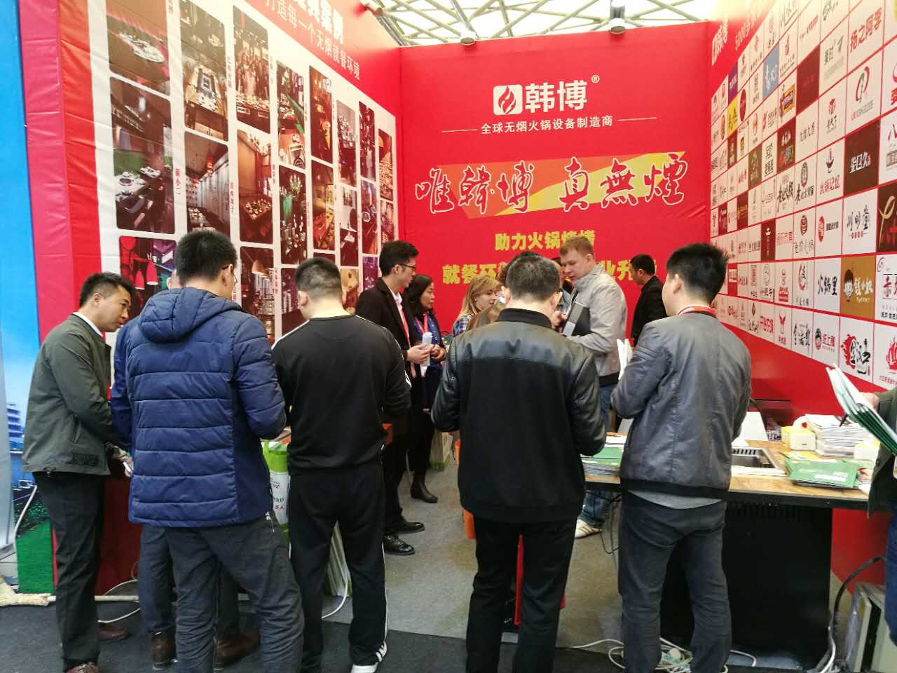 作為無煙火鍋設備領導者,韓博科技也攜新一代智能無煙火鍋震撼亮相!韓博科技以優質的產品和優秀的營銷服務,吸引了眾多客戶前來參觀,展會第一天就人氣滿滿